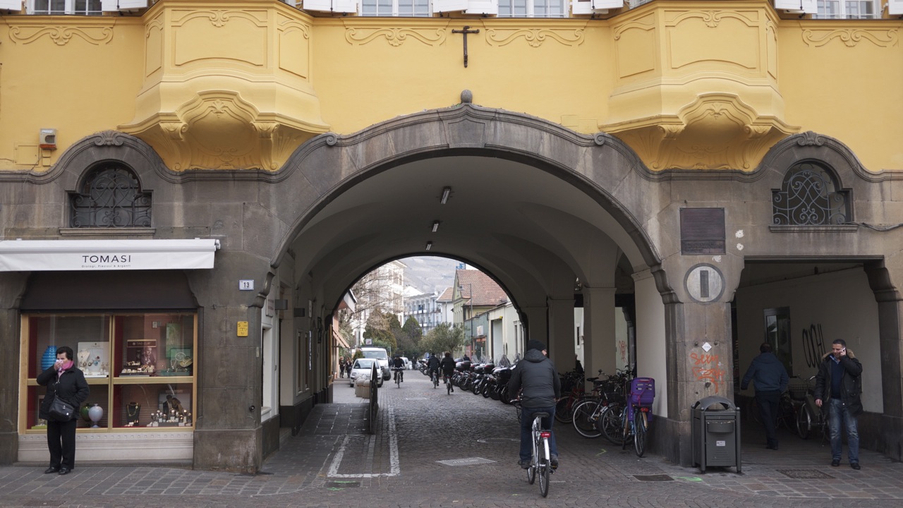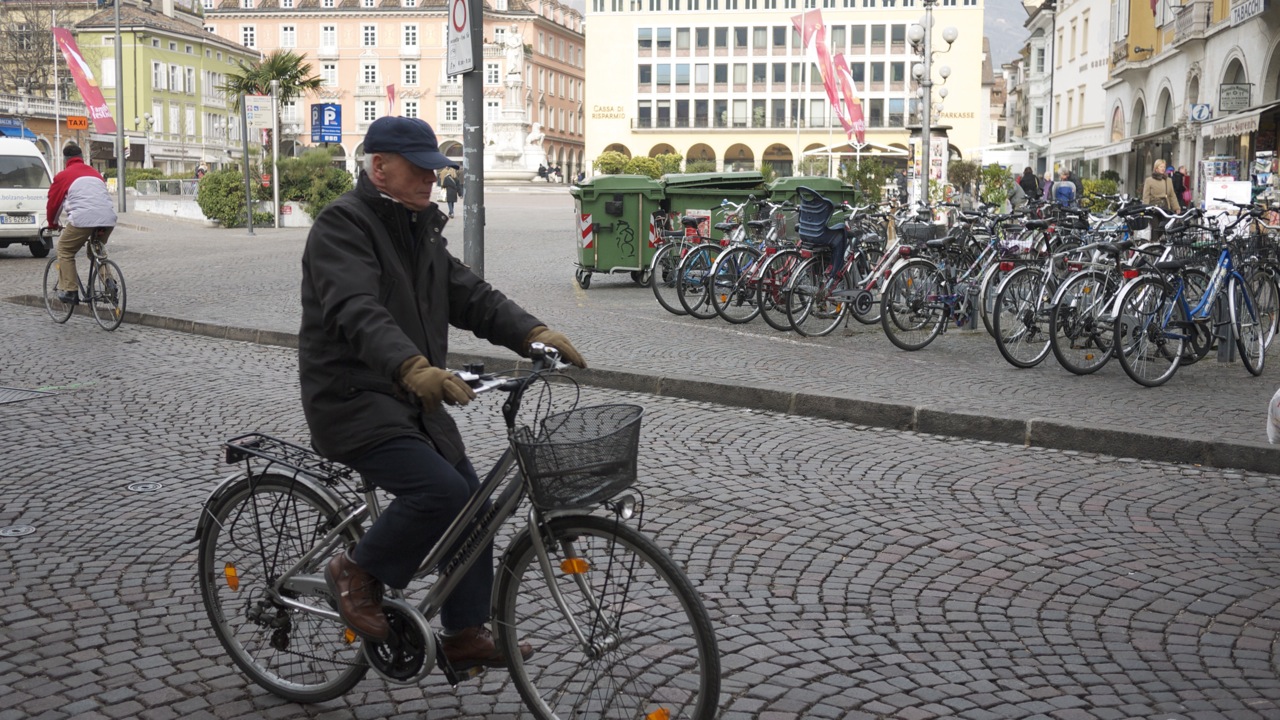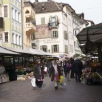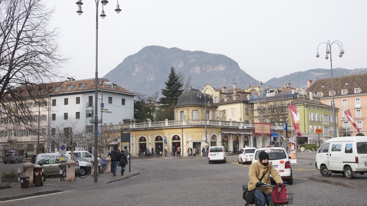 (FOTO’S) Bolzano (Bozen in het Duits) is de hoofdstad van Zuid-Tirol. Bij het uit de bus stappen werd ik bijna overreden, nota bene door een fiets. Verrassend, fietsers in deze mooie oude Italiaanse bergstad en niet één fietser maar honderden; jongeren, bejaarden, moeders met kinderen, het lijkt wel Amsterdam. De rijwielers crossen over marmeren voetpaden, racen door autoluwe steegjes en stuiteren van middeleeuwse trappen, geweldig. Het voelt helemaal als thuiskomen. Het stadje heeft een sfeervol oud centrum met ongelooflijk veel winkeltjes. Jammer dat de Italianen van die achterlijk lange middagpauzes houden anders had ik er heerlijk kunnen shoppen.