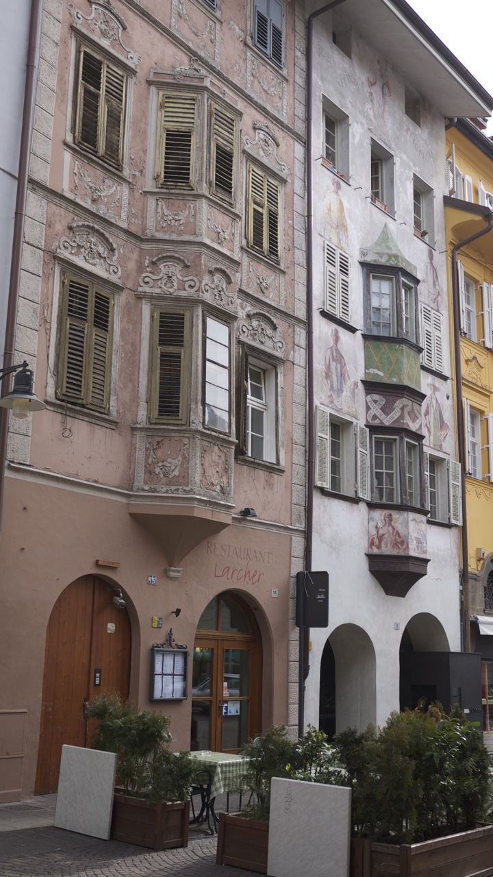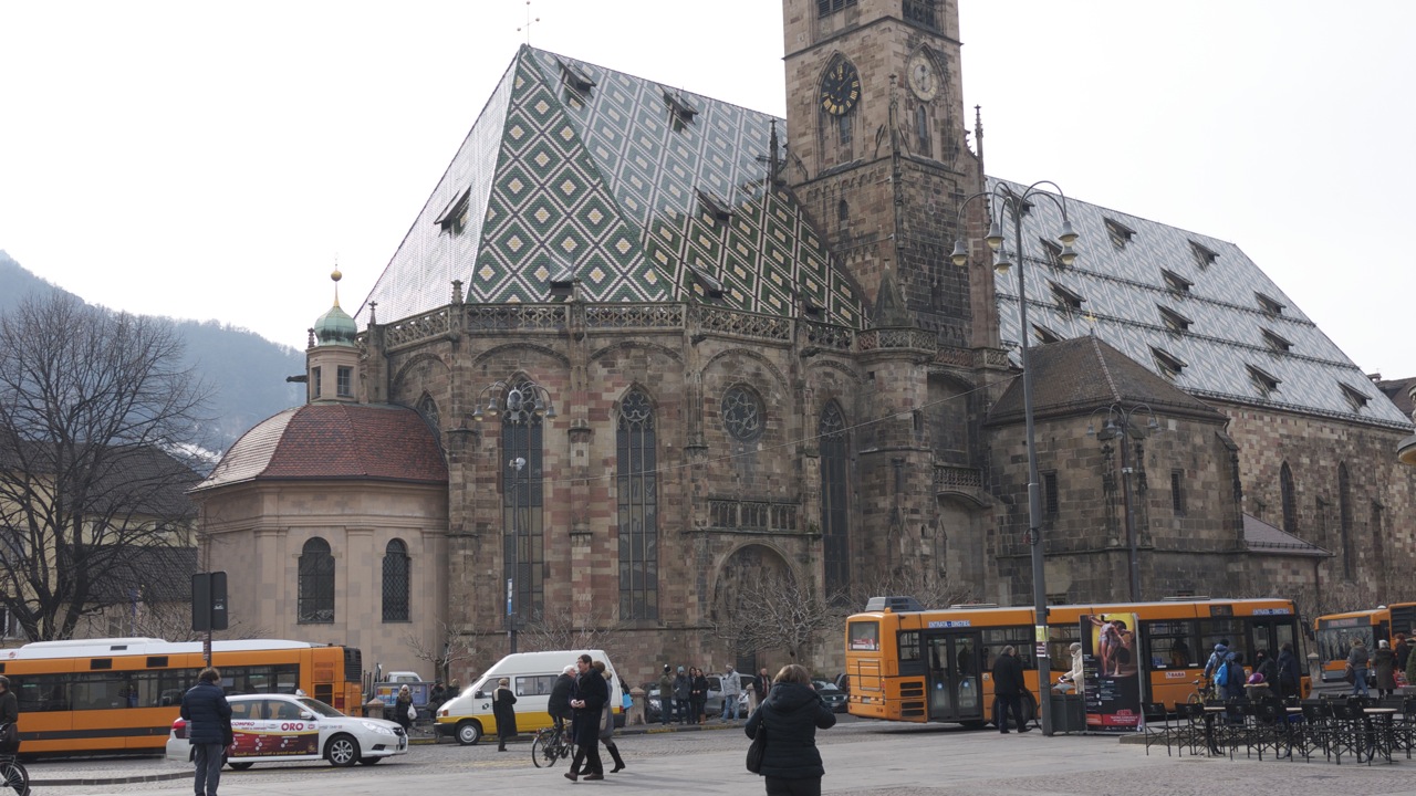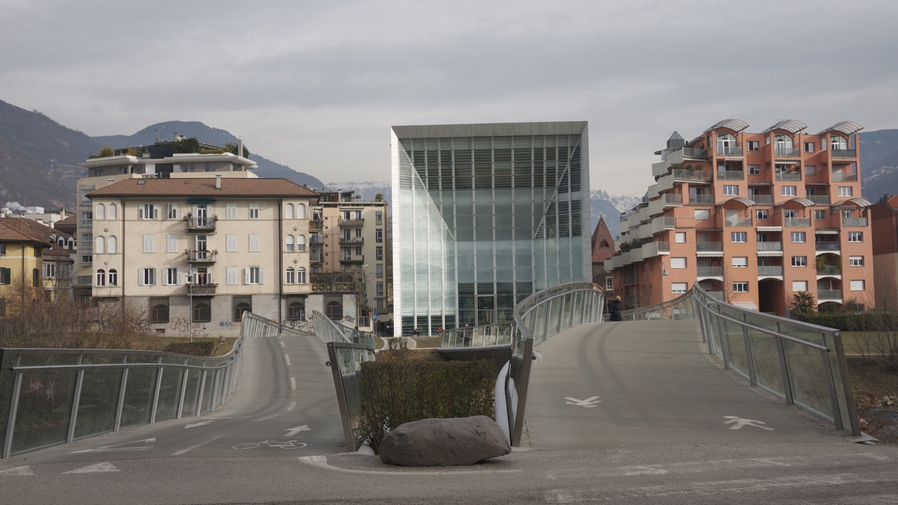 Ook bijzonder is het Museion: een hypermodern museum voor hedendaagse kunst. Overigens volledig uitgestorven, ik was de enige bezoeker samen met een bejaard echtpaar. Je vraagt je af wie dat museum daar neergezet heeft, met welk geld en voor wie? Na kort googelen kom ik erachter dat in 2008 een gigantische rel was uitgebroken. Het museum liet een werk van Kippenberg zien; een meter hoge kikker die als Jezus Christus aan handen en voeten vastgespijkerd zat aan een bruin kruis . “Dit is beslist geen kunstwerk, maar een godslastering en een walgelijk stuk vuil dat veel mensen ziek maakt”, aldus Franz Pahl, president van de regio. Hij ging zelfs in hongerstaking om het werk uit het museum te krijgen, maar het mocht niet baten.
